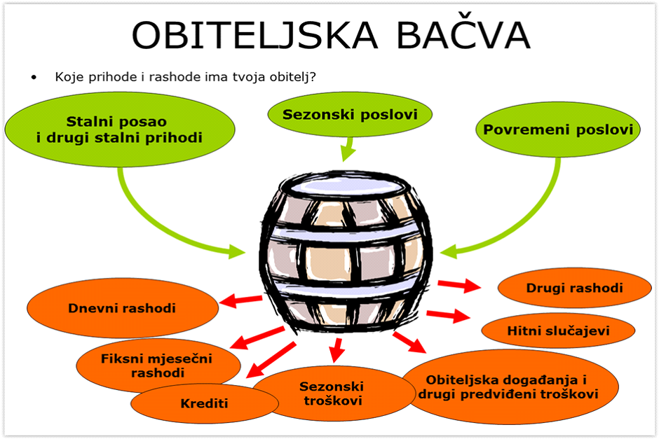 To je vaša „obiteljska bačva“. U nju se ulijevaju prihodi kućanstva, a kroz rupe cure troškovi i prazne bačvu.
